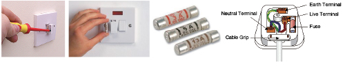 | ヒューズは、表示されているアンペア数値を確認の上、購入しましょう。通常はプラグ内に埋め込んであり、マイナスドライバーなどで簡単に取り出せます。大型家電のあるキッチンなどの壁のパネルの中のヒューズを交換する際は、安全のため、スイッチをオフにしてください。 | |||||||||||||||||||||||||||||||||||||||||||||||||