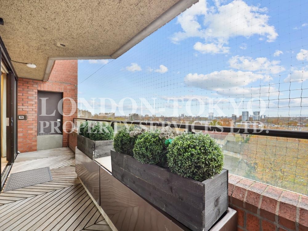 バルコニーから眺めの良いパーパスビルトのメゾネットタイプ、改装されたモダンな室内、眺望の良いリビングルーム、エアコン完備、駅真下ですが、大変静かな住宅環境。買い物至便なロケーション。すぐのご入居可能。